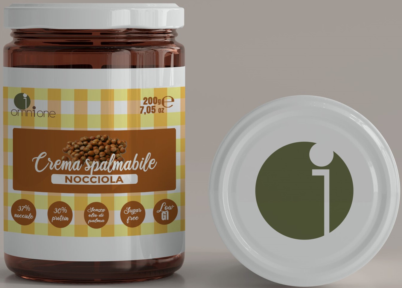 Crema alla Nocciola con edulcoranti, naturalmente SENZA GLUTINE, 37% di Nocciola, 30% di Proteine.